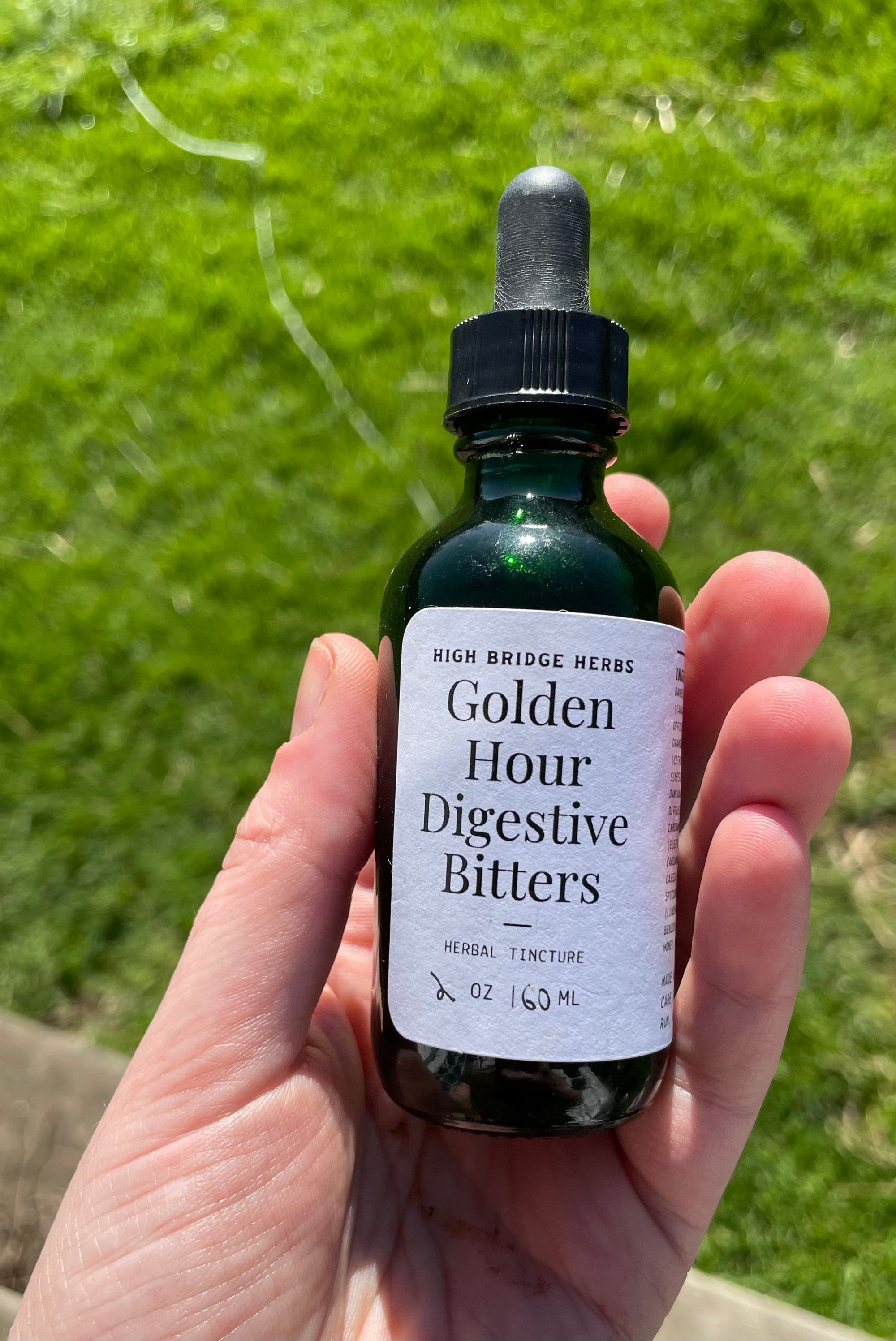 Digestive bitters are herbal formulas that stimulate digestive secretions and help us get as much nourishment as we can out of food. They can help reduce bloating, gas, and indigestion, promote appetite, and support liver function, while encouraging presence and groundedness. In this quite popular formula (if I may be so bold), dandelion root and orange peel spark the digestive fire, damiana uplifts the mood and encourages us to feel embodied, cardamom and cinnamon bring comforting warmth, and spicebush-infused honey adds wild sweetness, balanced by the smoky depth of mezcal.