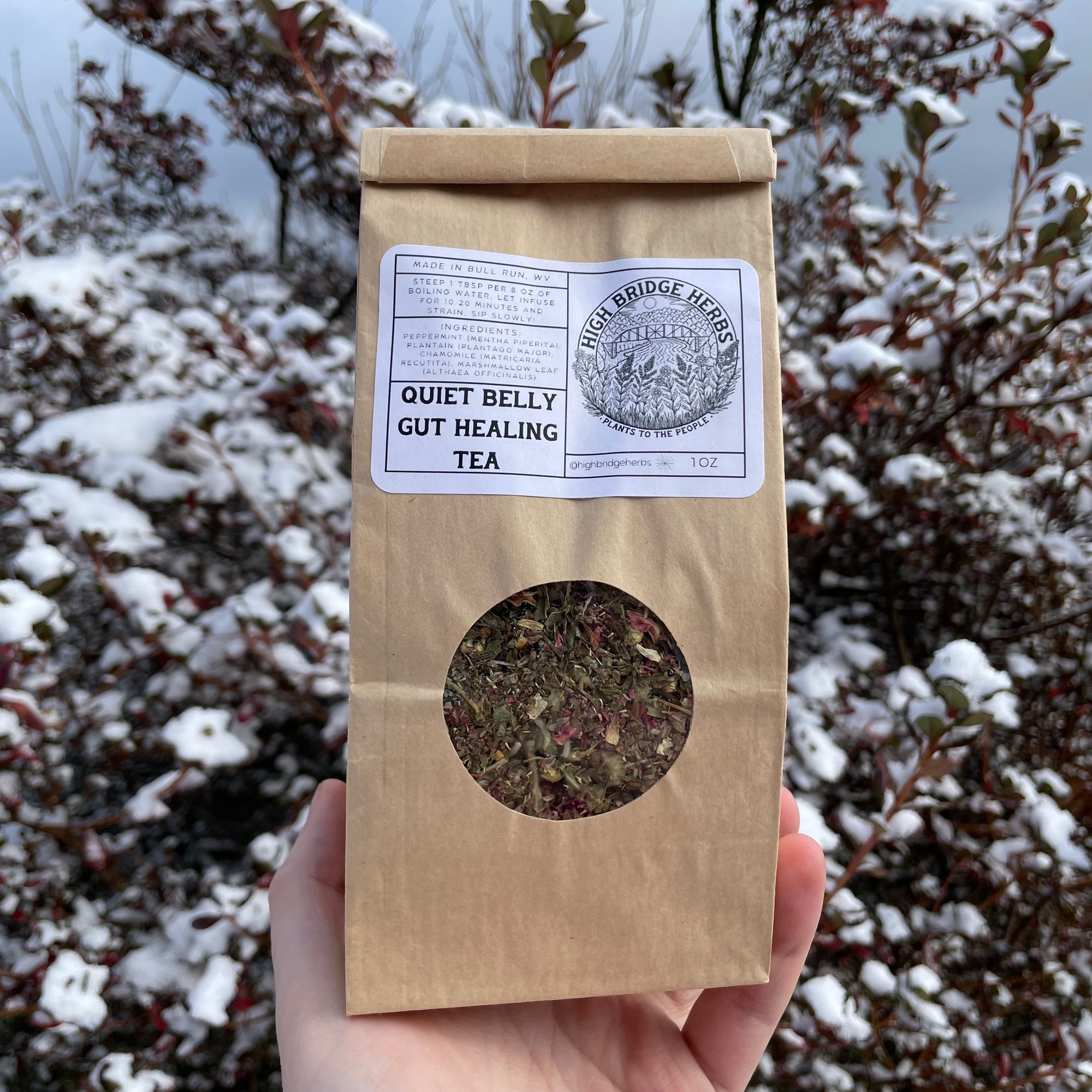 A gentle tea blend designed to support digestive health. Gut-healing teas like this one combine herbs that calm irritation, protect the digestive lining, and promote smooth, balanced digestion. Peppermint refreshes the mouth and eases tension, plantain and marshmallow leaf nourish the GI tract, and chamomile relaxes and soothes while mildly stimulating digestion.